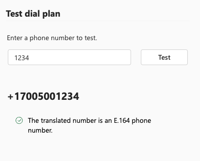 We can validate things are working as expected in the Teams Portal by using the dial plan test utility.