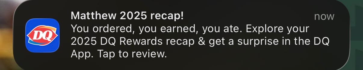 In practice, however, my phone just told me that Dairy Queen was proud of the memories we made together in 2024, and I am not emotionally equipped for that level of commitment.